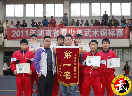 3月24日至29日,湖南省青少年武术锦标赛在湘西自治州吉首大学举行,来自全省各地州市100多名散打选手参赛。祁东文武学校代表衡阳市在此次比赛中获得馆校组六个级别的全部金牌和团体总分第一的优异成绩。