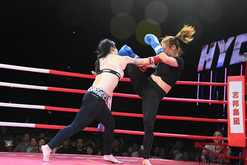 75公斤级对决双方分别是耒阳众一武术的徐力豪和湖湘武院的刘小童,徐力豪打过一些商业赛,实力和擂台经验都更胜一筹,比赛中他也频频用拳头威胁对手,而从武术套路改练散打的刘小童则努力用更为灵活的躲避和反击来化解对手的进攻,最后两人体能都下降明显,五个回合结束,徐力豪获得一致判定胜出。 80公斤级决赛,上赛季济南赛区冠军李旭再次出击,去年他的重拳就给人留下深刻印象,这一年来,他不仅瘦下来近10公斤,擂台上的移动和拳腿也有了不小的进步,比赛中他打得十分放松,重拳多次把对手打得趔趄。武术套路出身的刘湘雄显然非常吃力,比赛中他的拳架都很少抱起来,在对手步步紧逼之下,刘湘雄扛了两个多回合,最终放弃了比赛,李旭则赢得衡阳赛区冠军。 85公斤级的朱永龙与无差级的张瑰伟因为各自级别没有对手,两人打了一场表演赛。虽然张瑰伟体重多出5公斤,但朱永龙显然准备得更充分,他的拳头让对手有些吃不消,后者因为体能下滑严重,比赛中弃赛。 在成人组女子决赛中,凌娟和彭一敏两位火辣的湘妹子为观众奉献了一场赛法斗攻霸级对决。虽然退役多年,但凌娟开局的攻势很是迅猛,而随着时间的消耗,彭一敏的体能优势和反击也都打得有声有色,看到两位湘妹子“霸得蛮”,现场观众也受到感染,为这场女子之间拳拳到肉的对决喝彩点赞,经过三个回合苦战,凌娟最终夺冠。