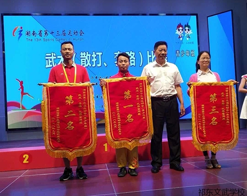 2018年第十三届省运会武术套路赛拳击赛于9月7号决赛结束,祁东文武学校代表衡阳队又以11枚金牌获武术套路金牌总数第一名。