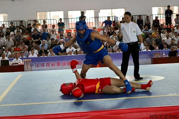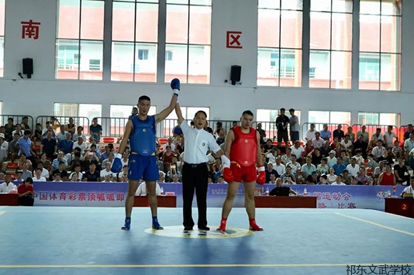 当天上午,祁东县文武学校体育馆里座无虚席,第一场男子组52公斤级散打决赛精彩上演,在激烈的比拼中,刘豪以他的拿手绝技:后直拳与前鞭腿,2比0战胜湖南省体育运动学校选手谭琪,获得该重量级冠军,赢得了全场观众热烈的掌声。