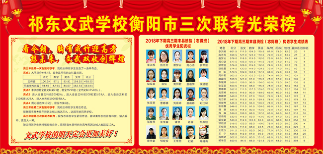 祁东文武学校参加衡阳市高三年级三次联考光荣榜