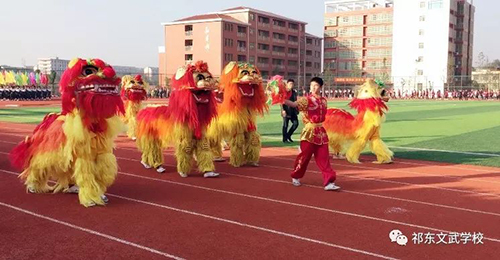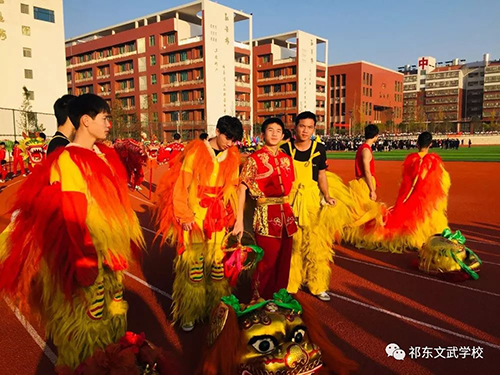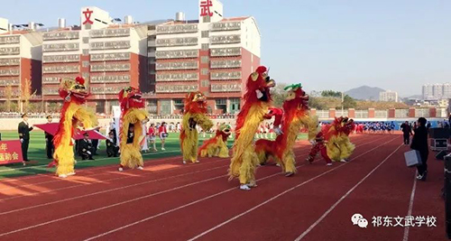 作为东道主的祁东文武学校,为开幕式准备了武术、龙狮节目展示。武术表演《少年中国说》给人一种河出伏流,一泻汪洋、潜龙腾渊,鳞爪飞扬的雄伟气势;《啦啦队操》表演中的28名啦啦队员像是一朵朵美丽的花朵,盛开在绿茵场上,激情诱人;《龙狮共舞》也像是在高歌盛世,喜添吉祥。独特的表演令观众的欢呼声、尖叫声、鼓掌声不断,掀起了开幕式现场气氛高潮。