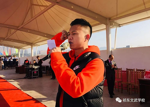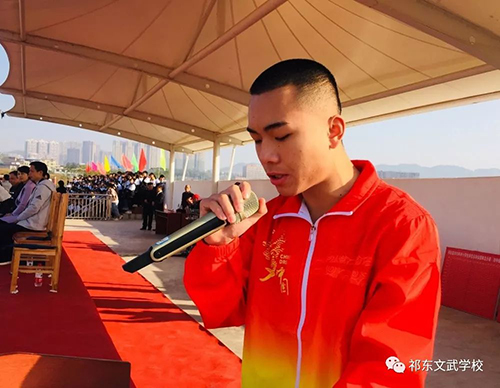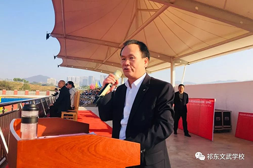 祁东文武学校肖智勇校长在致欢迎词时表示,首先,热烈欢迎各代表队来我校参加祁东县2019年中小学田径运动会,其次,祁东文武学校给大家提供了一个运动的平台、竞技的平台、展示的平台,在这个平台中,希望全体运动员能以高昂的斗志和顽强的拼搏精神,赛出风格、赛出成绩、赛出道德风尚。