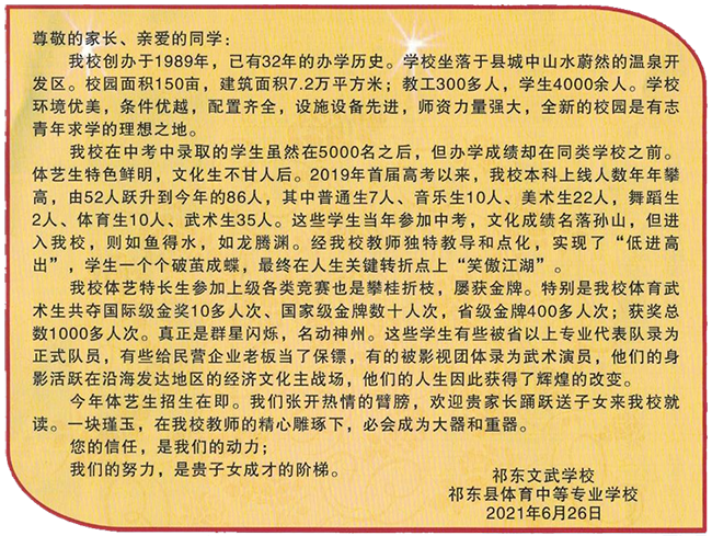热烈祝贺祁东文武学校、祁东体育中专2021年高考大捷